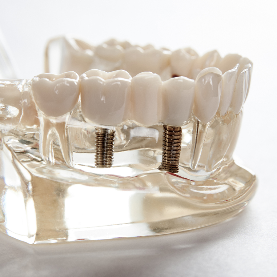 自分の歯と同じような機能を回復できる義歯がインプラントです。歯を失った箇所の顎の骨に人工の歯根を埋め込み、骨とくっついたら人工の歯を被せます。 顎に固定するので安定感があり、自分の歯のように食事や会話を楽しめるため、入れ歯が合わなかったという方にもおすすめです。メンテナンスをきちんと行えば、長期的にお使いいただけます。