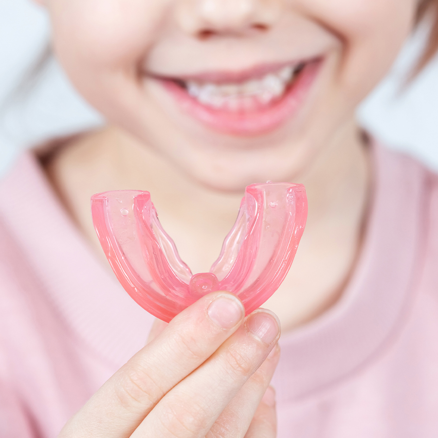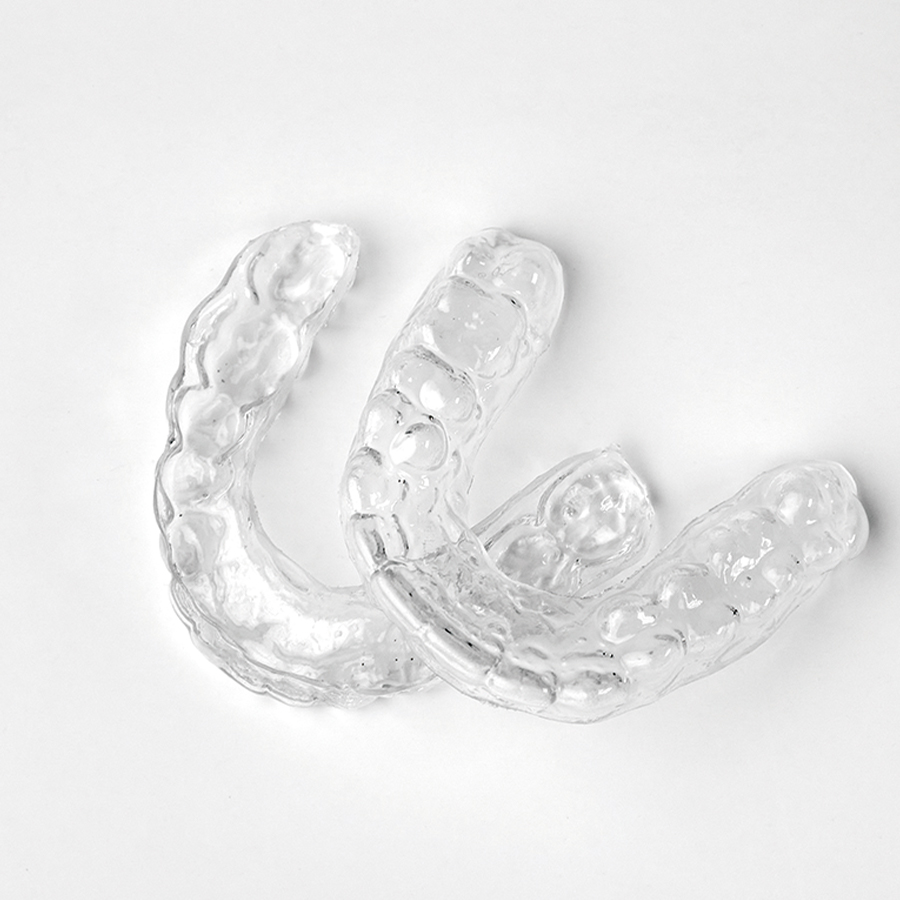 各種マウスピースの製作に対応しております。 ●ナイトガード(顎関節症・歯ぎしり・食いしばりの症状の緩和用) 寝ている間や日中に装着することで、歯や顎の骨にかかる負担を軽減します。 ●スリープスプリント(睡眠時無呼吸症候群の治療用) 睡眠中に装着することで、のどの奥に舌が落ち込むのを防ぐマウスピースです。気道が広がり、いびきの緩和が期待できます。